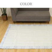 表地綿100%。中心部分のしじらはシャキッとさわやか。さらっとしていて夏に最適。凹凸感があり肌ざわり◎。額部分は北欧テーストを採用し明るい雰囲気を出した商品です。柄に垂直にキルトを入れるこだわりの製法を採用して見た目にもすっきりとした商品に仕上げています。裏素材は強度のあるポリエステル不織布を採用。すべりにくい加工をしているのでフローリングでも使用しやすい商品です。約1.5畳サイズでソファー前やベッド横などに最適。敷きパッドとしても使用できるサイズです。