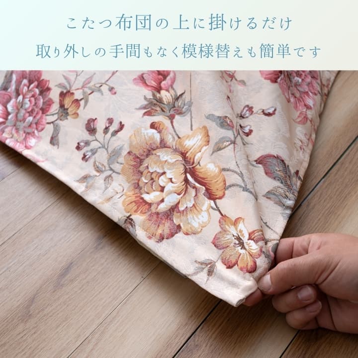 上掛の転写プリントで表現された花柄デザイン、部屋全体の雰囲気アップ 取り付けや取り外しも簡単