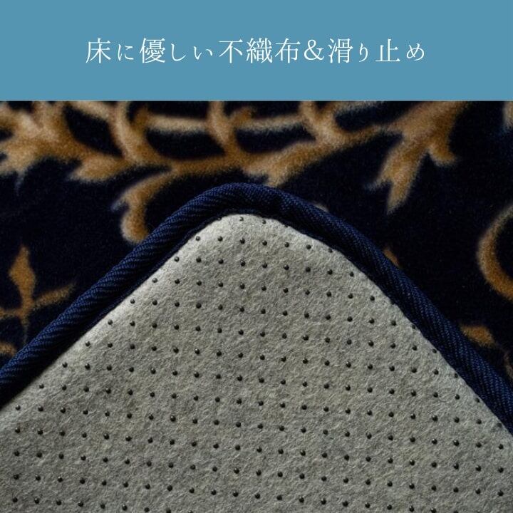 ボリュームたっぷりのボア生地に、立体的に浮かび上がる柄がリッチな印象のエレガントラグです。クッション性もあり気になる生活音も軽減します。裏面はすべりにくい加工でズレずに安心。