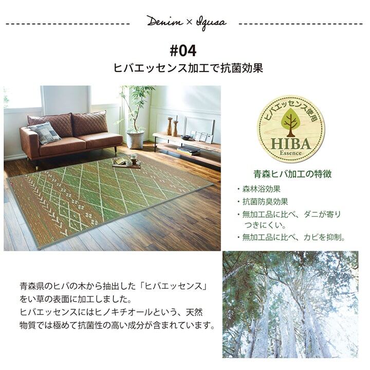 い草に青森産天然ヒバから抽出した植物由来成分で【抗菌防臭加工】をほどこしています。