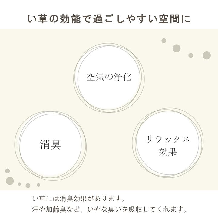 い草には空気の自然浄化作用、湿度の調節作用、リラックス効果などがあります。