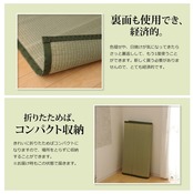 上敷きを敷くだけで畳のお部屋をリフレッシュ出来ます。日焼けしてしまった畳のリフレッシュに、新品の畳を汚さないためのカバーにご使用下さい。長さ105〜110cmの国産(九州産)い草を使用しています。そのうち約95cmを使用しています。ヘリ際は強く白みを帯びます(日焼けではありません、い草の根元と先端部分の色です。)が、安価でお求めやすい商品です。い草は長いものほど高級になります。い草は先端部分が赤茶色く、根元が白く真中が青(緑)色です。真中の良質な青の部分を多く使用するほど、丈夫で綺麗な仕上がりとなります。またイ草は使用するうちに日焼けをしますが、真中の青の部分を多く使用したものほど、全体が綺麗にムラなく日焼けし、味が出ます。国産(九州産)のい草を使用しています。国産い草は一本一本が太く、表皮が厚く繊維がキメ細かいので弾力性があり、耐久性に優れています。い草には空気の清浄化作用、湿度の調節作用があり、汚れにくいといった特徴があります。い草に青森ヒバ加工を施しています。(抗菌、防臭効果)表裏の両面が使えて経済的です。