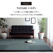 フローリングに置くだけ。なつかしい畳の香りと肌ざわりを手軽に楽しめます。い草には空気の自然浄化作用、湿度の調節作用などがあります。い草に、青森産天然ヒバ由来成分で抗菌防臭加工をほどこしています。(抗菌、防臭効果)中材は木製ボードタイプ+ポリエチレンで程よいクッション性と重量感があります。※ 掲載写真は表記サイズと異なる場合がございます。※ 画面上のカラーはご使用ブラウザやモニターの設定により、実物とは若干異なる場合がございます。あらかじめご了承の上、ご注文をお願いいたします。