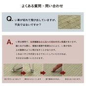 フローリングに置くだけ。なつかしい畳の香りと肌ざわりを手軽に楽しめます。い草には空気の自然浄化作用、湿度の調節作用などがあります。い草に、青森産天然ヒバ由来成分で抗菌防臭加工をほどこしています。(抗菌、防臭効果)中材は木製ボードタイプ+ポリエチレンで程よいクッション性と重量感があります。※ 掲載写真は表記サイズと異なる場合がございます。※ 画面上のカラーはご使用ブラウザやモニターの設定により、実物とは若干異なる場合がございます。あらかじめご了承の上、ご注文をお願いいたします。