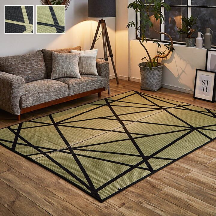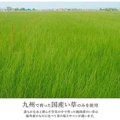 現代のライフスタイルに合う、モダンなデザインのい草カーペットです。細かい織目が美しく、敷くだけで高級感が漂います。裏にはウレタンフォームでほどよいクッション性を持たせているので床を傷つけにくく滑りにくいです。国産(九州産)のい草を使用しています。一本一本が太く、表皮が厚く繊維がキメ細かいので弾力性があり、耐久性に優れています。い草には空気の自然浄化作用、湿度の調節作用などがあります。青森産天然ヒバから抽出した植物由来成分で抗菌防臭加工をほどこしています。希少な国産い草を用いて、ベテラン職人が、長年の経験を活かし、国内工場で丹念に織りあげました。ご家族のくつろぎの場に、安心して使用いただけます。