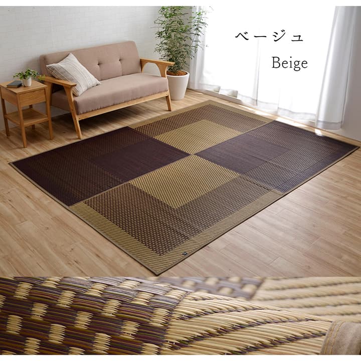 国産(九州産)のい草を使用しています。一本一本が太く、表皮が厚く繊維がキメ細かいので弾力性があり、耐久性に優れています。