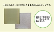 届いたユニット畳を床に置くだけで和のスペースが出来上がります。見た目や、い草生地の織りなど一般の畳に近い雰囲気に仕上げました。なつかしい昔ながらの畳がお好みの方におすすめの商品です。こちらの商品の表生地は畳表と同じ織り方の糸引織りで仕上げました。双目織と比べて、い草の打ち込み本数が多いため、しっかりとしていて丈夫です。表面が滑らかなので、ホコリなどがたまりにくいのが特徴です。い草には空気の自然浄化作用、湿度の調節作用などがあります。また汚れにくく、使用するうちに黄金色に変化し、味が出ます。中材に木製ボードを使用した重量感のある本格タイプです。裏の不織布にはすべり止め加工を施しています。また木製ボードとイ草生地の間にウレタンを使用していますので、ほのかなクッション性があります。