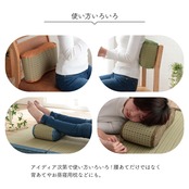 *抗菌加工はい草生地の表面に施されています。すべてのカビや菌に効果があるわけではありません。高温・多湿の状態で放置すると、カビや細菌が発生しやすくなります。すっきりとしたドット柄のおしゃれない草のフィットクッション。デスクワークやリビングでのリラックスタイムの腰当てや背あてとして使用したり、リビングでのごろ寝に使用したりと使い方いろいろな便利クッションです。中材は低反発ウレタンを使用。もっちりとした感触が特徴です。