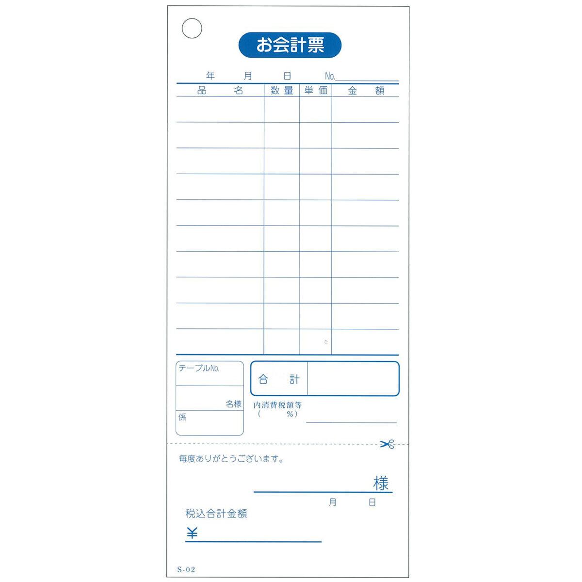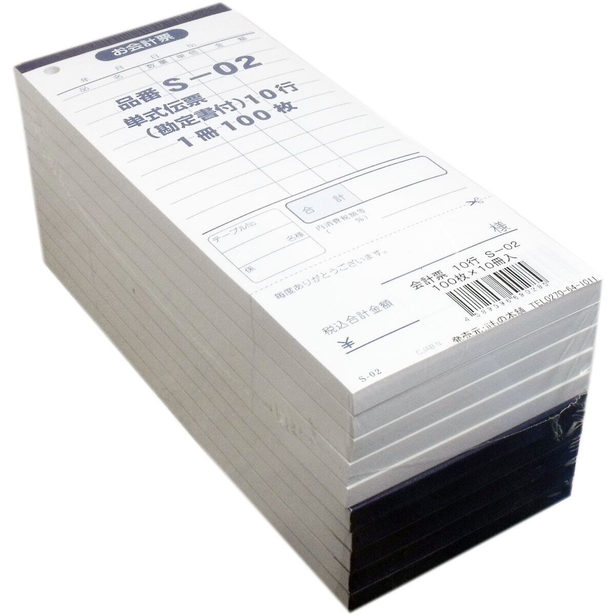 会計票 単式伝票(勘定書付)10行 S-02 100枚×10冊入 発送1/5~