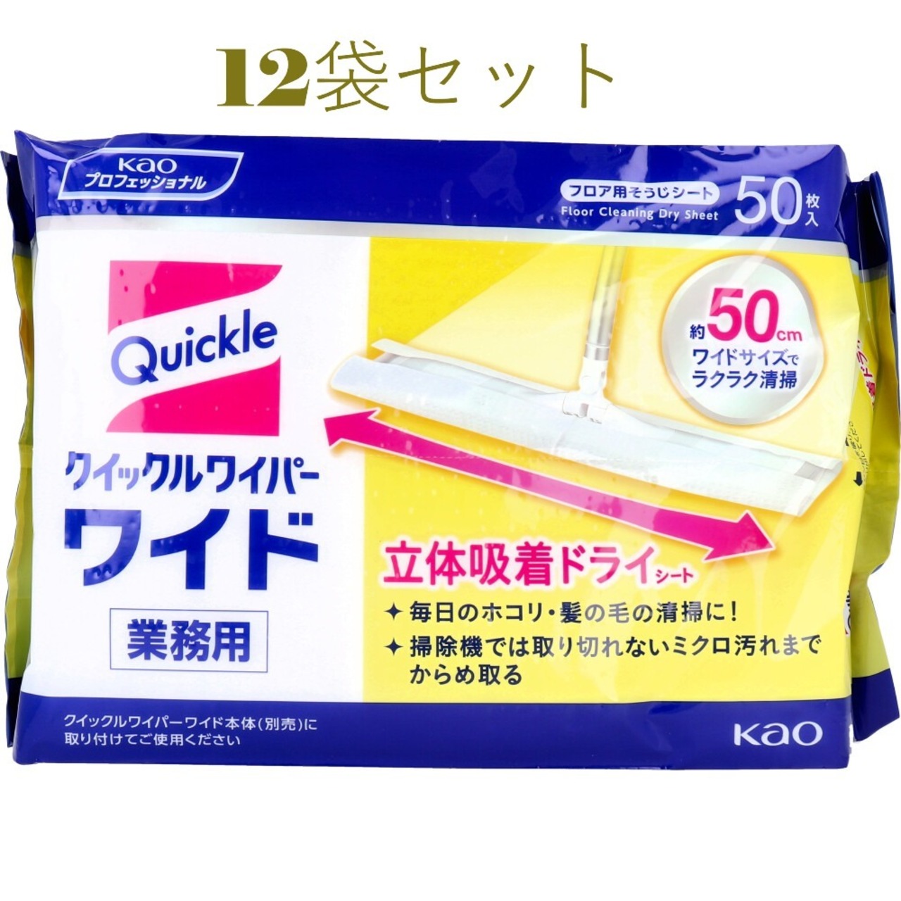 【12袋セット】花王業務用 クイックルワイパー ドライシート ワイドサイズ 50枚入