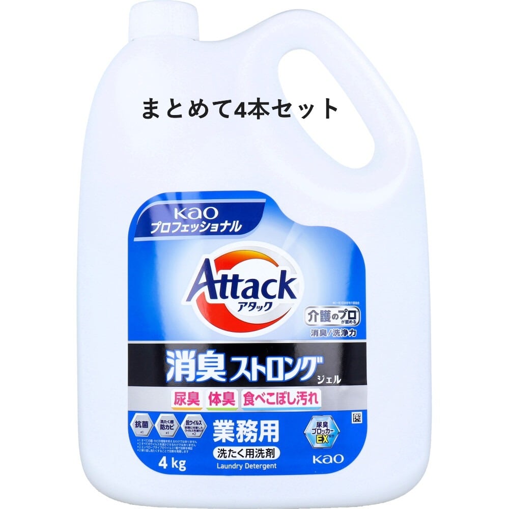 【4本セット】業務用 アタック 消臭ストロングジェル 洗たく用洗剤 4kg